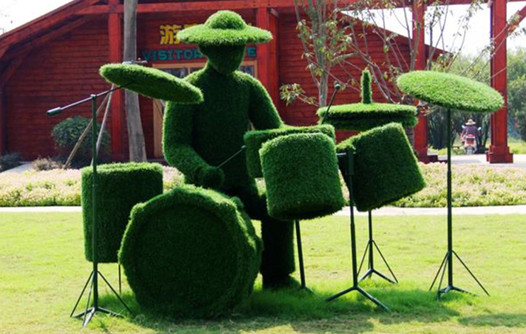 綠雕是“有生命”的植物雕塑,一般內設鋼材構架,然后在構架上填充種植土,再于其上栽植耐修剪的觀葉觀花植物,巧妙地把雕塑造型與花卉園藝結合在一起,從而提升城市綠化的園林藝術水平。